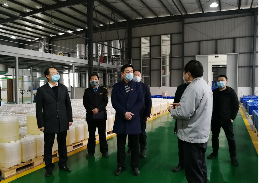 吳書記一行詳細詢問了廠區(qū)疫情防控措施落實情況和復工復產工作,并對公司所做的工作給予了高度的評價和肯定。他強調,要進一步增強安全復工復產和疫情防控重要性的認識,要把疫情防控工作作為當前最重要的工作來抓,堅持以安全生產的理念和方法,嚴格落實主體責任,盡可能消除疫情傳播的一切隱患,構建嚴密的疫情防控安全網。要嚴格做好內部人員的排查管理和體溫監(jiān)測工作,合理安排好員工用餐、休息等問題,積極做好廠區(qū)殺菌消毒工作,為員工營造一個安全良好的工作、生產環(huán)境。