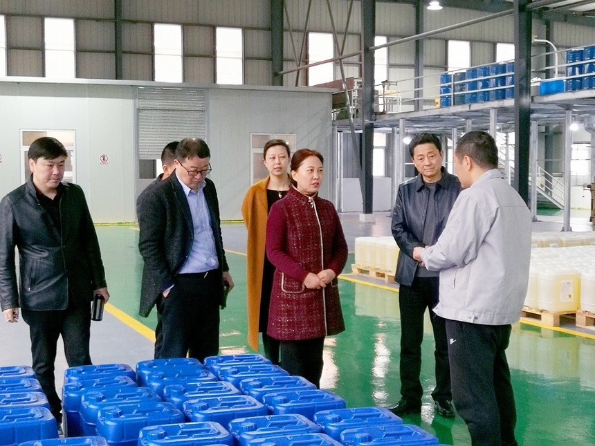 在公司執行董事長何文安的帶領下,茍英明主任一行實地察看了企業的廠區建設、周邊環境等相關情況,進入生產車間進行了現場觀摩,并看望勉勵了生產工人。