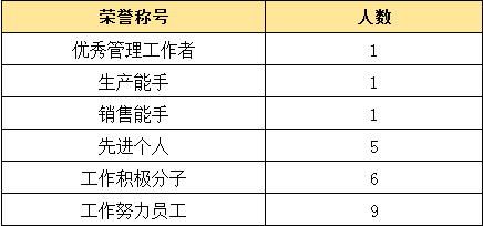 2021年是公司全面發(fā)展,推進(jìn)創(chuàng)新項(xiàng)目關(guān)鍵的一年,也是接受挑戰(zhàn)和考驗(yàn)的一年。一年來(lái)全體員工凝心聚力,團(tuán)結(jié)協(xié)作,共同努力,奮力拼搏,實(shí)現(xiàn)了公司平穩(wěn)健康發(fā)展,出色完成了全年目標(biāo)任務(wù),涌現(xiàn)出了一批先進(jìn)典型。為表彰先進(jìn),進(jìn)一步調(diào)動(dòng)員工的工作積極性,促使圓滿(mǎn)完成2022年度目標(biāo)任務(wù),在工作中再創(chuàng)新的佳績(jī)。經(jīng)公司總經(jīng)辦會(huì)議研究決定評(píng)以下榮譽(yù)稱(chēng)號(hào)并進(jìn)行獎(jiǎng)勵(lì)。