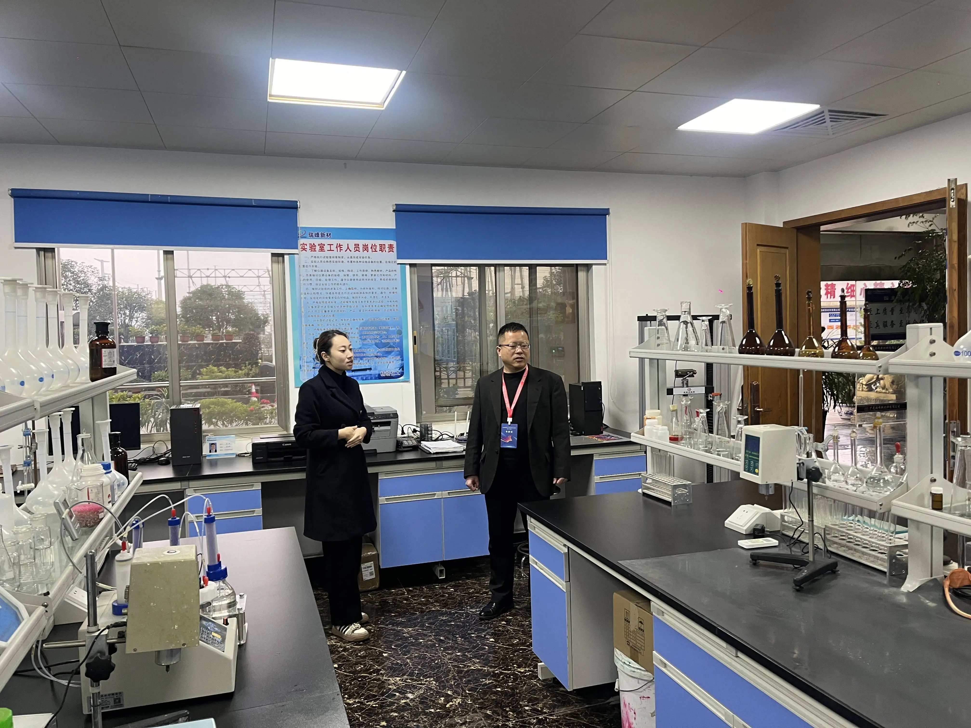 國家高層次人才暨留學歸國人員服務行走進廣元瑞峰新材料有限公司,旨在為廣元市瑞峰新材料有限公司的人才發展提供指導和支持。董事長何文安、副總經理張欣怡與研發部工作人員陪同參觀了公司試驗分析室等。