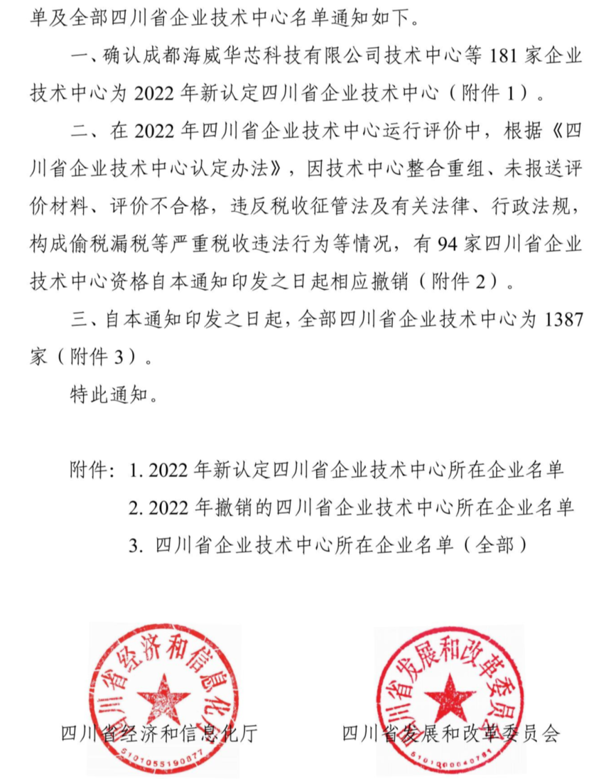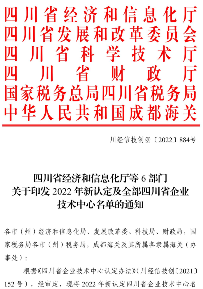 2022年新認(rèn)定四川省企業(yè)技術(shù)中心所在企業(yè)名單(排名不分先后)