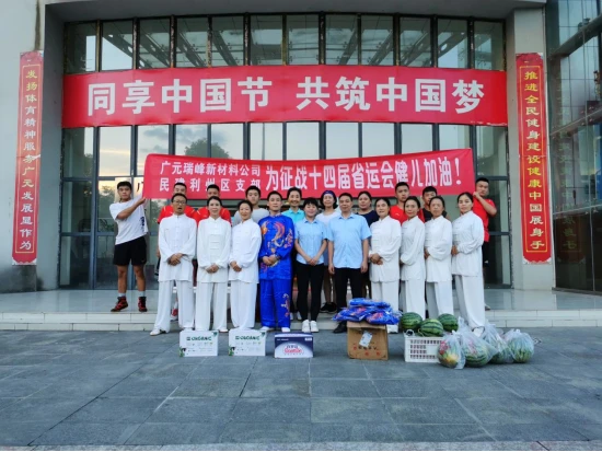 廣元瑞峰新材料有限公司作為一個(gè)有社會(huì)責(zé)任感的企業(yè),我們只能為健兒們略盡綿薄之力,向在高溫天堅(jiān)持訓(xùn)練和奮戰(zhàn)在崗位上的體育健兒和場(chǎng)館工作人員表示慰問,并請(qǐng)大家保重身體,注意避高溫,做好防暑工作,做到安全訓(xùn)練,安全工作,同時(shí)還送上了清涼降暑等慰問品,給他們鼓勁加油。