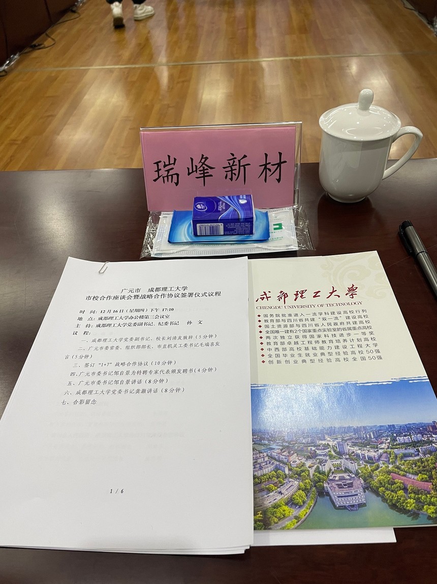 廣元市瑞峰新材料有限公司于12月16日參加廣元市與成都理工大學(xué)的戰(zhàn)略合作協(xié)議簽訂,此次市校合作由廣元市委書記鄒自景親自牽頭,在會場市校雙方達成多向共識,為廣元市企業(yè)贏得更多的科研機會,依靠成都理工大學(xué)的科研實力能夠更好的促進當(dāng)?shù)仄髽I(yè)新項目,高精尖項目的研發(fā)落地,創(chuàng)造更多企業(yè)和高校價值。