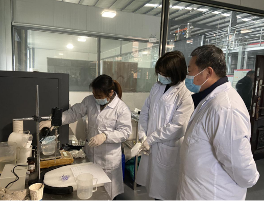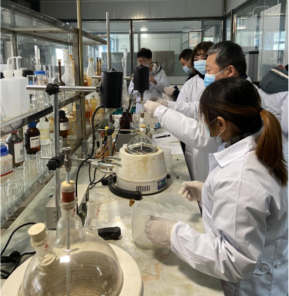 公司董事長何文安、總經理李成斌代表公司對郭教授、劉教授一行的到來表示熱烈歡迎,并安排了細致的接待工作。在此次溝通交流中,我司技術部門的員工,積極咨詢針對日常在研發、試驗、檢驗等情況中出現的問題及疑惑,郭教授耐心的解答,并與劉教授在實驗室親手操作,對每個步驟逐一講解,也指出了目前公司實驗室的不足之處。我公司與蘭州大學郭教授科研小組關于750環保增塑劑的項目進展良好,目前增塑劑UN899和UN488兩類產品進入了最后的調試、測驗階段,相信在郭教授的指導下,我司能保持蓬勃發展的氣勢,不斷進步,取得更好的成績。